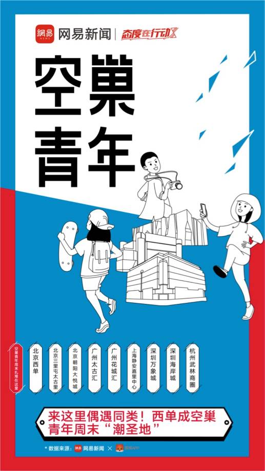 大部分空巢青年雖然錢包不鼓,卻并不宅,社交也不缺乏。他們中的55%每周與朋友聚會(huì)至少一次,并有著聚會(huì)轟趴點(diǎn):北京的西單、三里屯太谷里、朝陽(yáng)大悅城;廣州太古匯、花城匯;上海靜安嘉里中心;成為北上廣空巢青年的根據(jù)地,西單更是名列榜首成為空巢青年周末“潮圣地”。